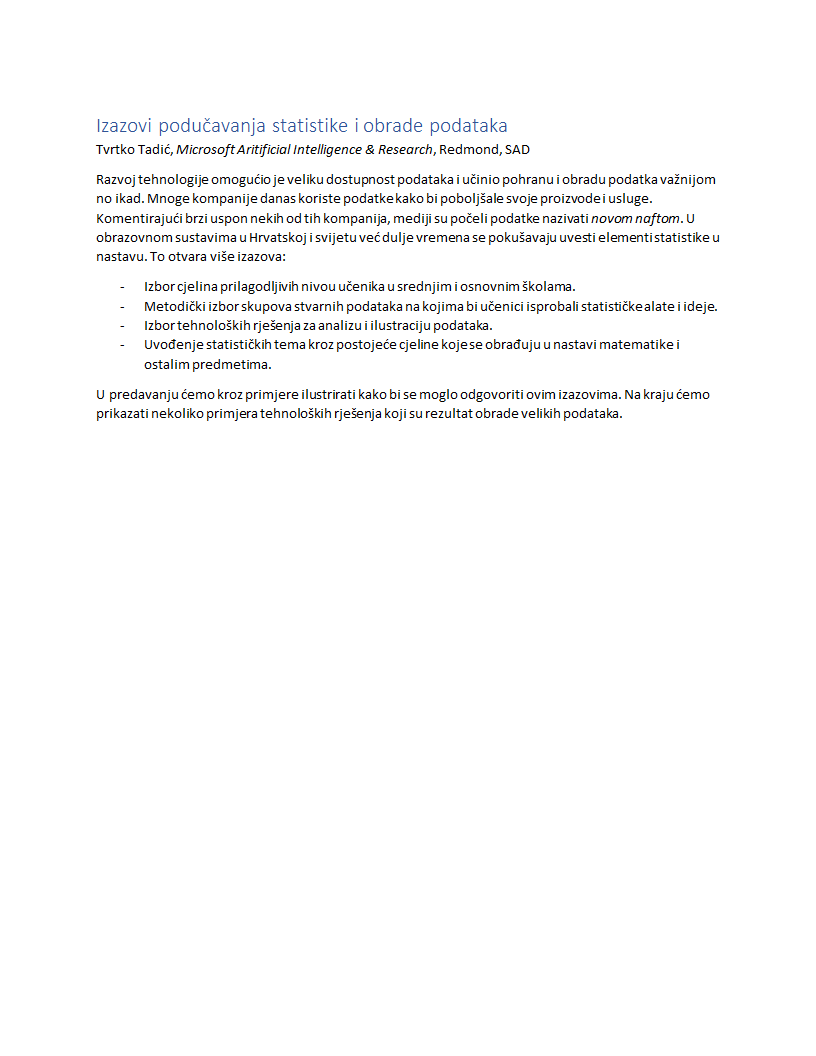 Tema predavanja je predstavljanje projekta IPAQ PETA - Afirmativna nastava i inovativno učenje i poučavanje u gimnazijama u okviru Hrvatskog kvalifikacijskog okvira. Naglasak će biti na matematičkom dijelu projekta u sklopu kojega se, između ostalog, planira razviti i izvesti program Nacrtna geometrija s naglaskom na perspektivnu geometriju.